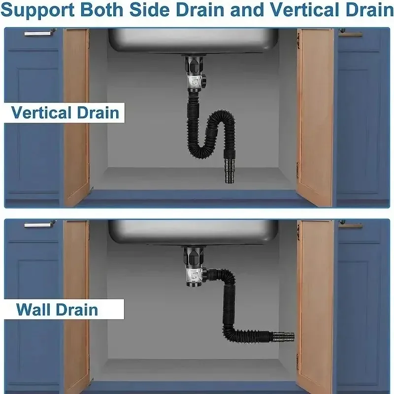 Stainless Steel Basin Drain Pipe Set Odor Proof Wall Mount Drainage for Kitchen Bathroom Sink