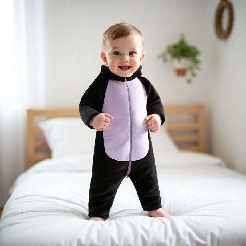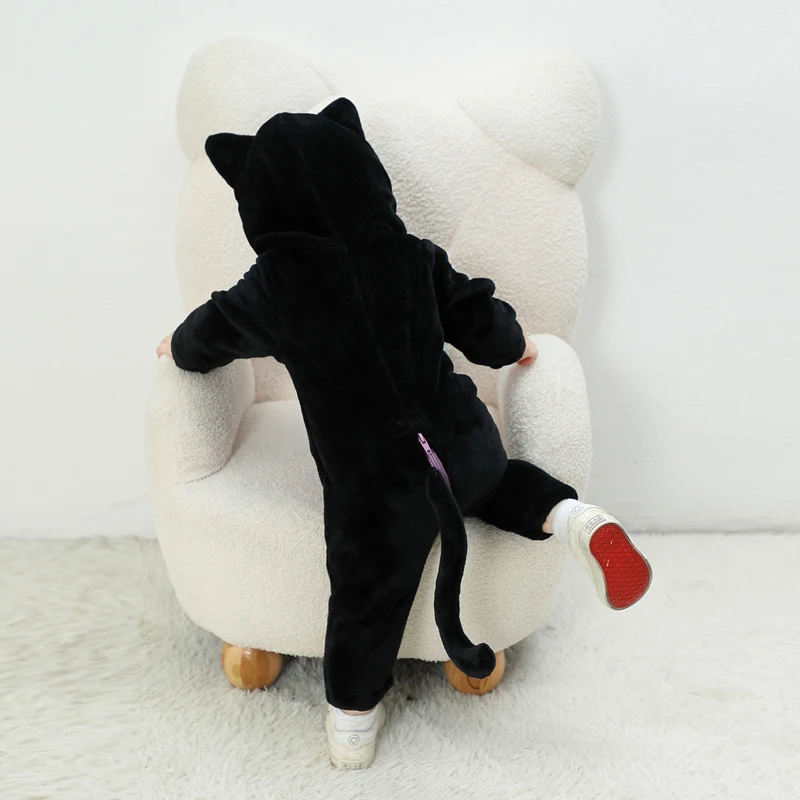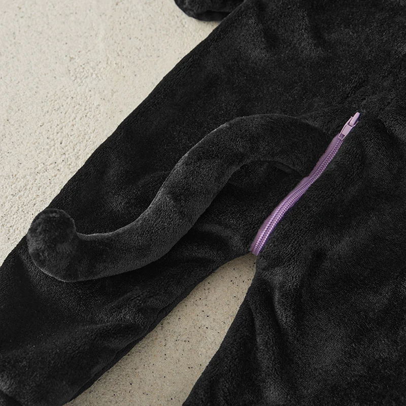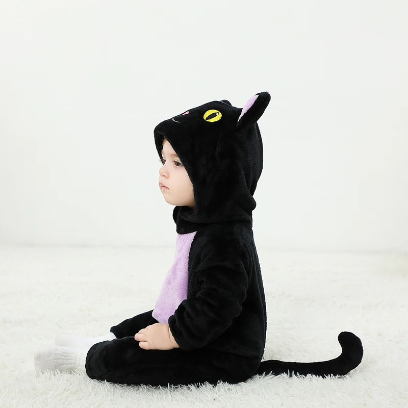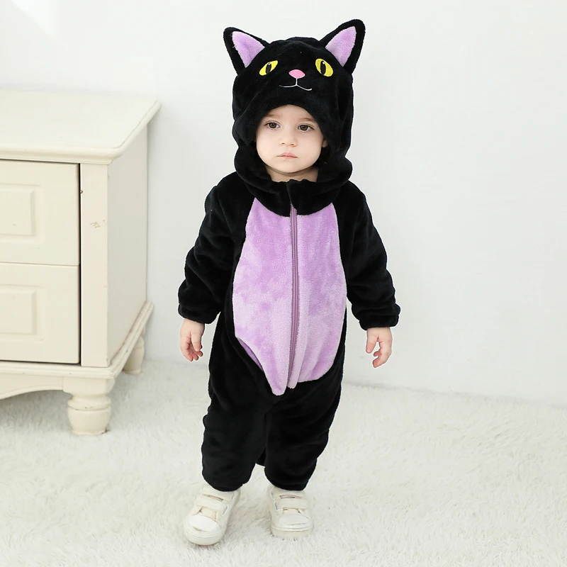 Suefunskry Toddler Baby Halloween Cosplay Jumpsuit, Long Sleeve Hooded Cat Zipper for Boys Girls