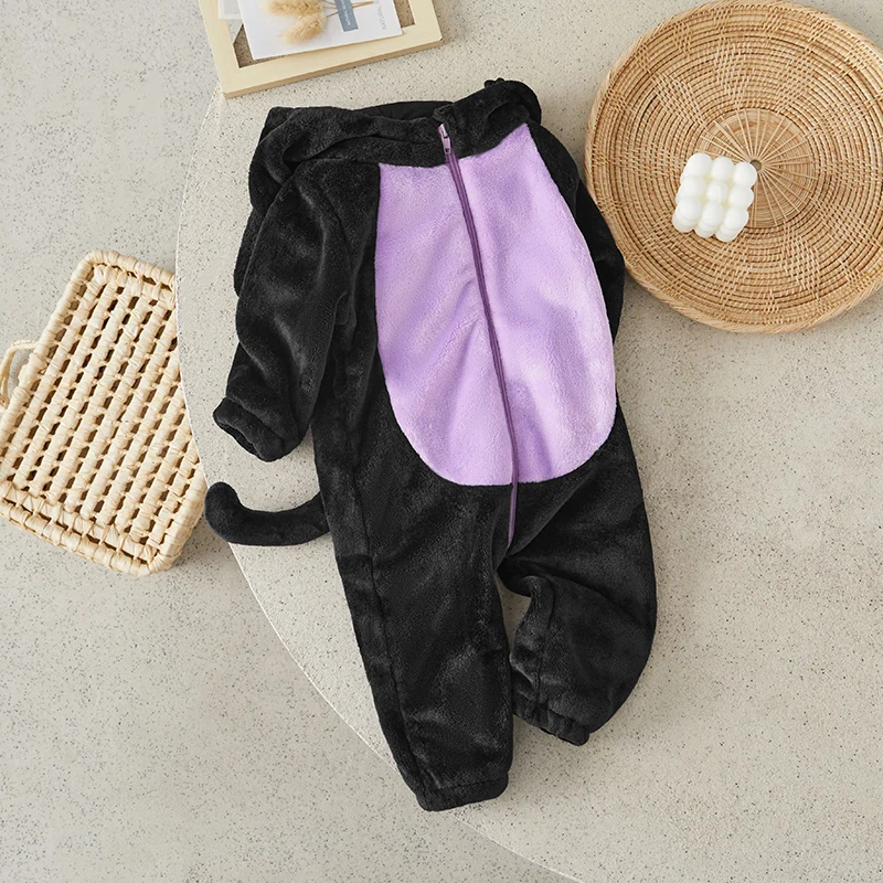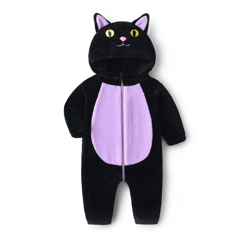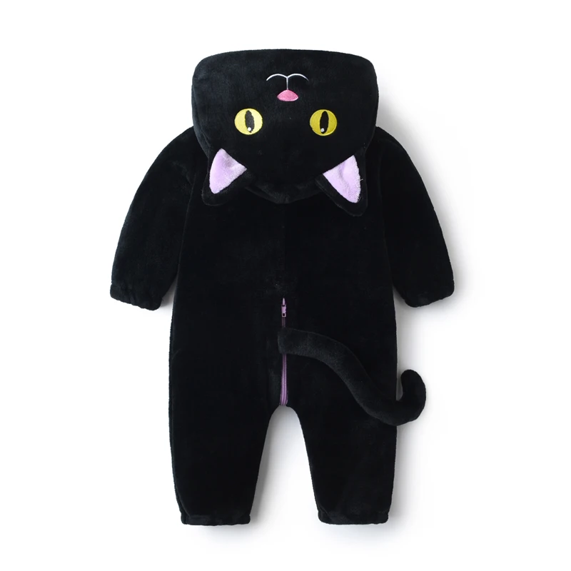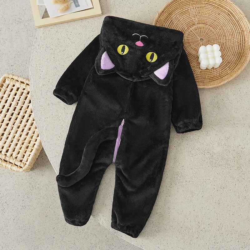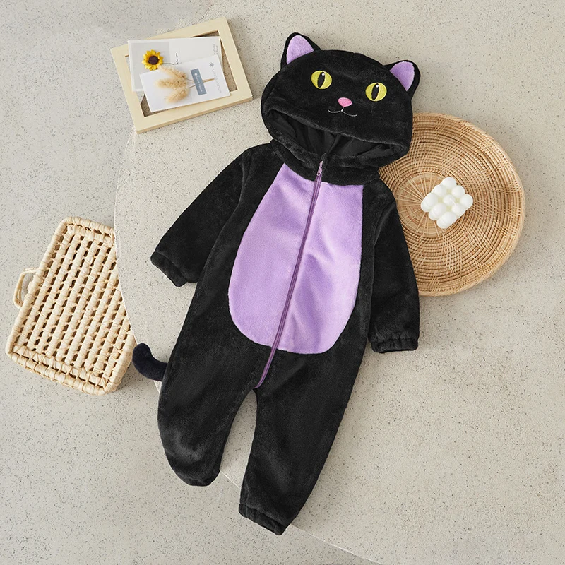Baby Jumpsuit, Long Sleeve Hooded Cat Zipper Closure Fall Romper Clothes for Boys Girls